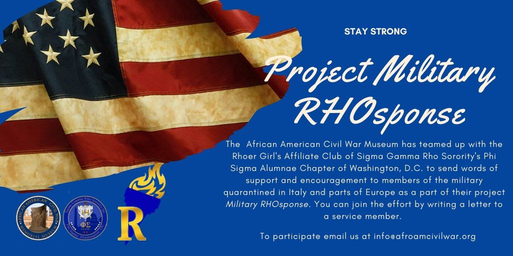 The African American Civil War Museum is teaming up with the Rhoer Club and inviting you to take part in this important initiative by sending letters and cards to service members. Little is needed but to compose a card or letter that might possibly brighten someone’s day. To participate email the African American Civil War Museum at info@afroamcivilwar.org and you will be connected with a service member to send a letter to.