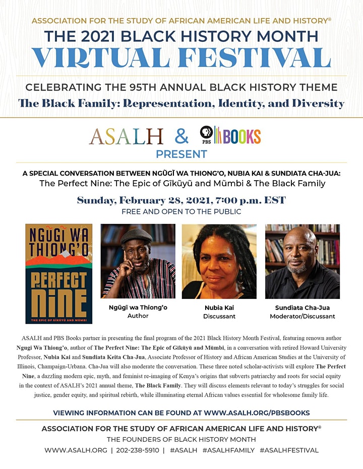DC Black History Happens Now by DC Black HistoryFebruary 28, 202111:36 amFebruary 28, 2021 ASALH and PBS Books Present: A Conversation with Ngugi Wa Thiong’o, Sundiata Cha-Jua, and Nubia Kai Related
