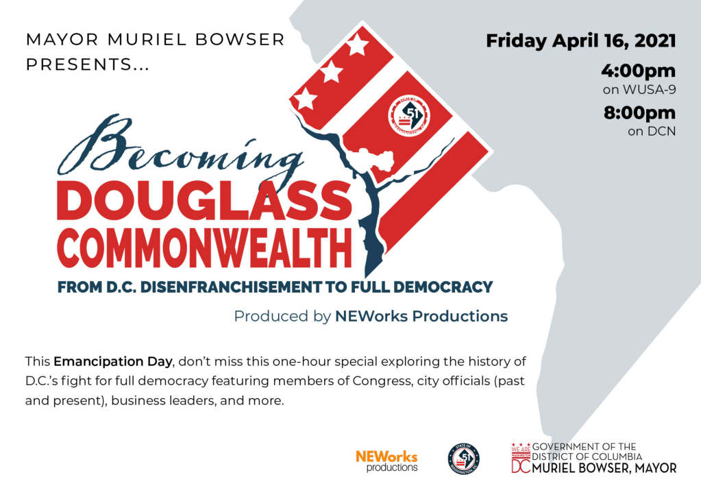 Our one-hour television special that chronicles the long and complicated journey towards Washington, District of Columbia becoming our 51st state, Washington, Douglass Commonwealth. Featuring Rep. Eleanor Holmes Norton, Rep. Steny Hoyer, Rep. James Clyburn, Rep. Jamie Raskin, The Honorable Eric Holder, The Honorable Muriel Bowser, The Honorable Vincent Gray, The Honorable Adrian Fenty, The Honorable Anthony Williams, The Honorable Sharon Pratt, Phil Mendelson, Linda Cropp, William Lightfoot, Ted Leonsis, Chef Jose Andres, John DeGioia, and more. #DCStatehoodNow