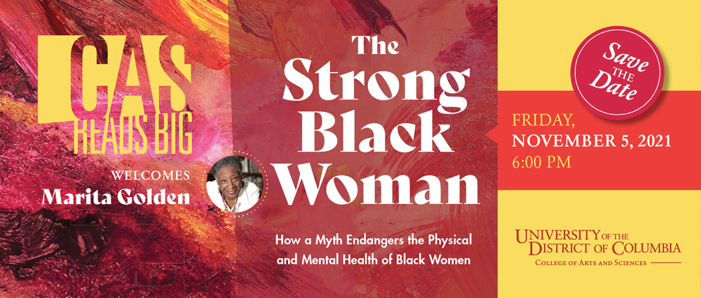 CAS Reads Big presents an incomparable evening of storytelling, discussion, and prescription as celebrated author Marita Golden discusses her latest book, The Strong Black Woman: How a Myth Endangers the Physical and Mental Health of Black Women.