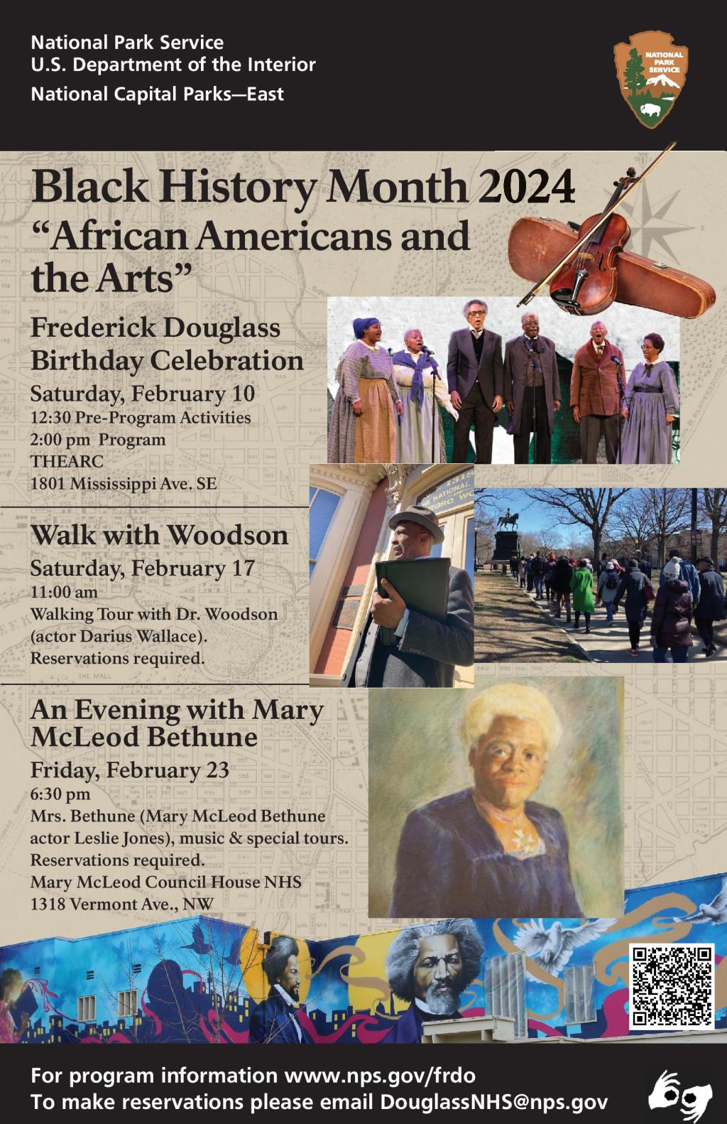 Walk literally in the footsteps of the creator of Black History Month, Dr. Carter G. Woodson, from the Mary McLeod Bethune Council House NHS through the Logan Circle and Shaw Neighborhoods. Noted actor, Darius Wallace will portray Dr. Woodson and highlight noted figures and landmarks relating to Black History on this neighborhood tour. The program concludes with a short performance at Shiloh Baptist Church, accompanied with hot chocolate and coffee. (90 min, outdoor portion: 30 min). Distance is approximately ½ mile. The walk will start at the Mary McLeod Bethune Council House NHS. Reservations required and may be made by emailing DouglassNHS@nps.gov.