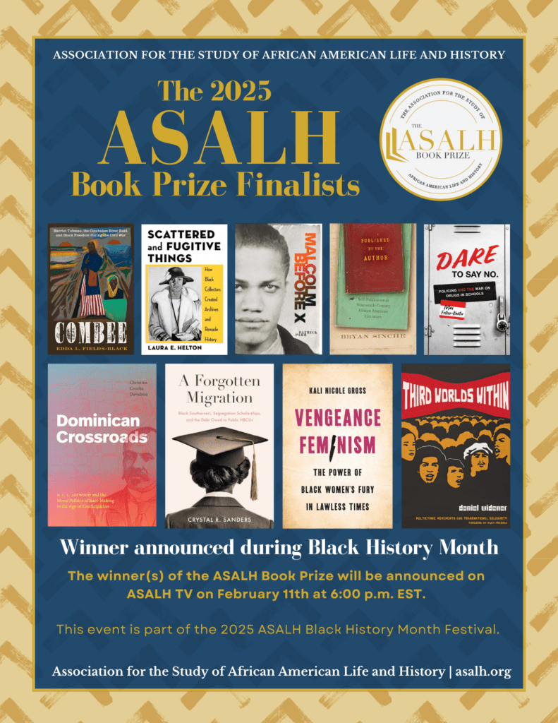 “Make sure you mark your calendar and do not miss this annual program announcing the winner of the 2025 ASALH Book Prize.