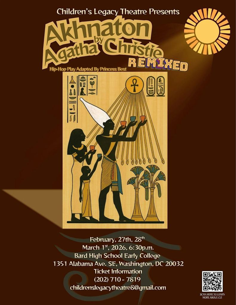 Children's Programs, DC Black History Happens Now, Plays & Performances by DC Black HistoryFebruary 25, 202612:55 pm Children’s Legacy Theatre Inc 27-28feb&1Mar A remix of Akhnation by Agatha Christie A Hip-Hop Adaptation Rewritten by Melissa Princess Best Related