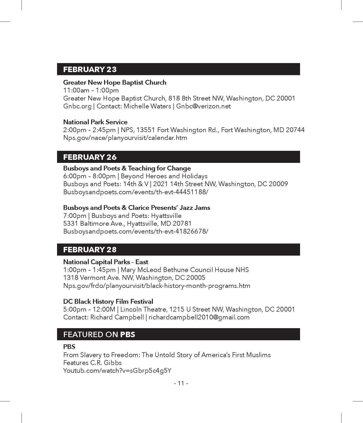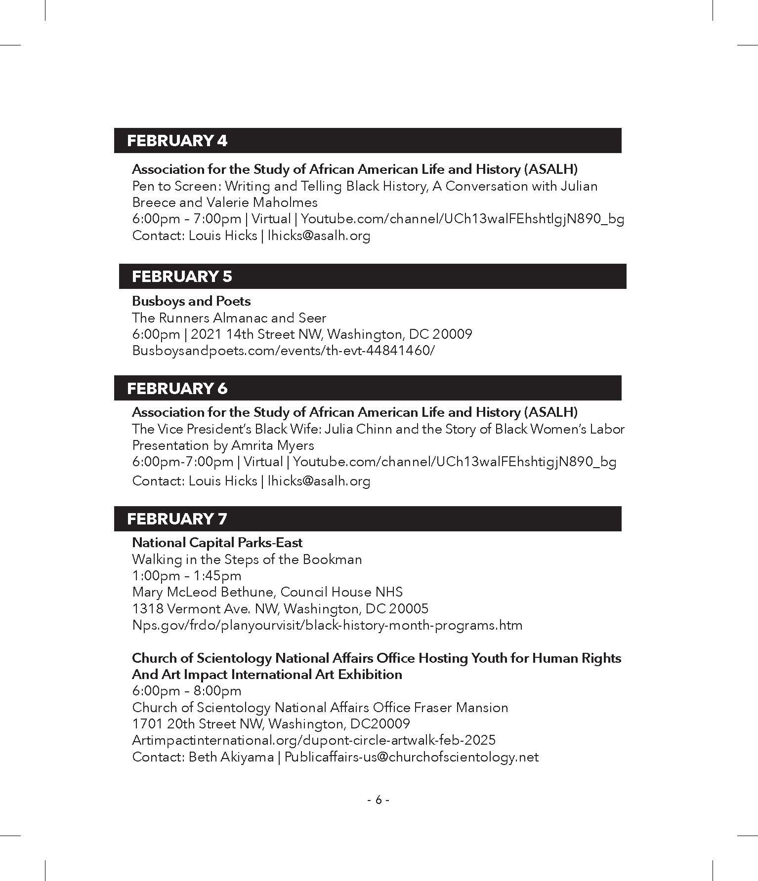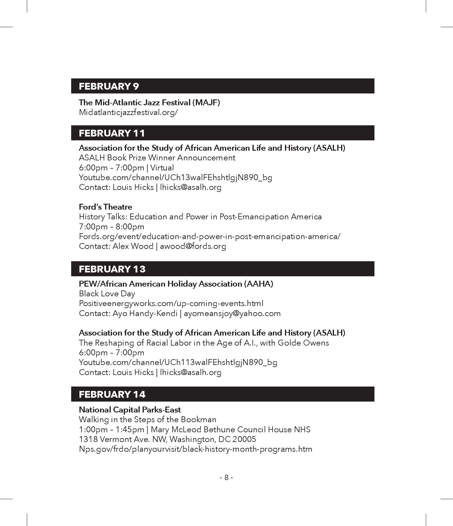 Programs that are open to the public will be continually listed and distributed on the website & social media pages throughout the year, please continue to submit to DCBlackHistory.com, DCBlackHistory.org, DCBlackHistory on Facebook and DCBlkHistory@gmail.com.